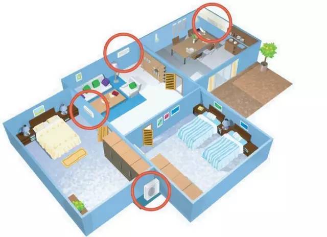 ① 同一系統(tǒng)的室內(nèi)機(jī)使用一個(gè)空開(kāi);